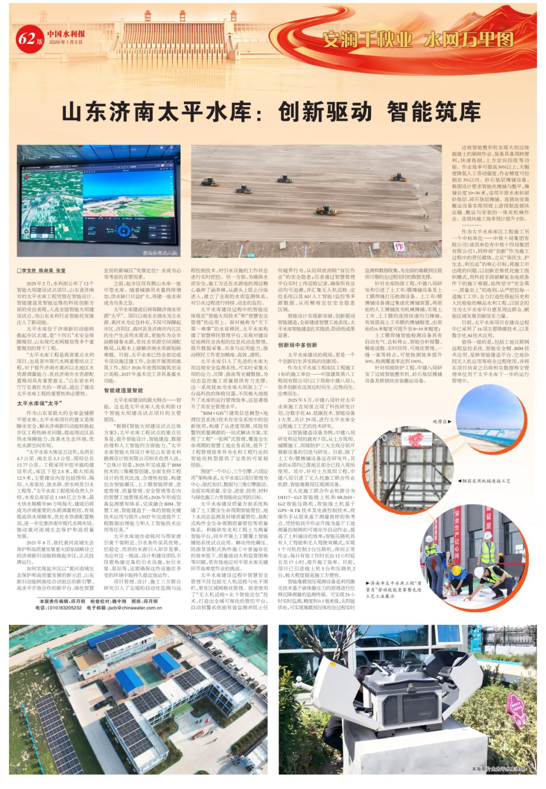 ? ? ? ?1月5日,《中國水利報》刊登的《山東濟南太平水庫:創新驅動 智能筑庫》通訊稿件中,對濟南城投集團建設的太平水庫工程的重要性以及科技創新方面的突出表現進行了報道。
